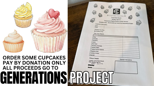 Miss Regina Evans & Jordan Hinrichs are going to have CUPCAKES available on April 19th after service!! All by donation only and ALL proceeds go to the Generations Project! You can pick up a pre-order form in the foyer or order online through the link!